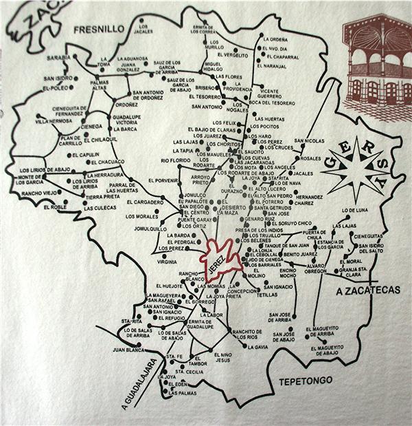 This map shows the ranchos and towns of the district of Jerez, I bought it in 2003 so some of the old names have been changed.
