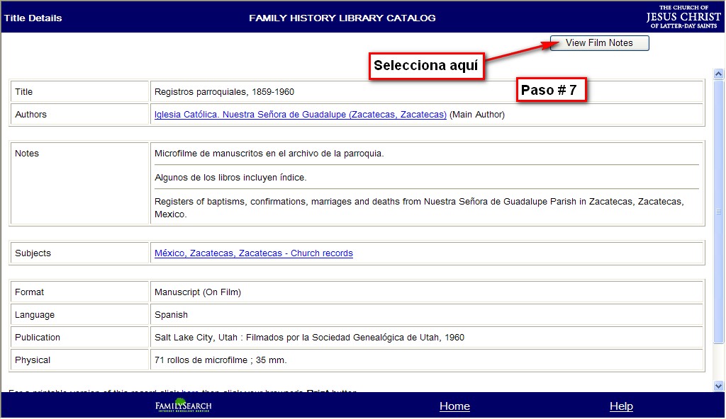 By Eduardo H Seoane , 19 March, 2009 Log in to post comments <Return to Acidfree Albums> <Return to FamilySearch Fotos>Como ver el contenido de la parroquias con un numero de Film 7<Prev> <Next> Image Paso # 7, Step 7