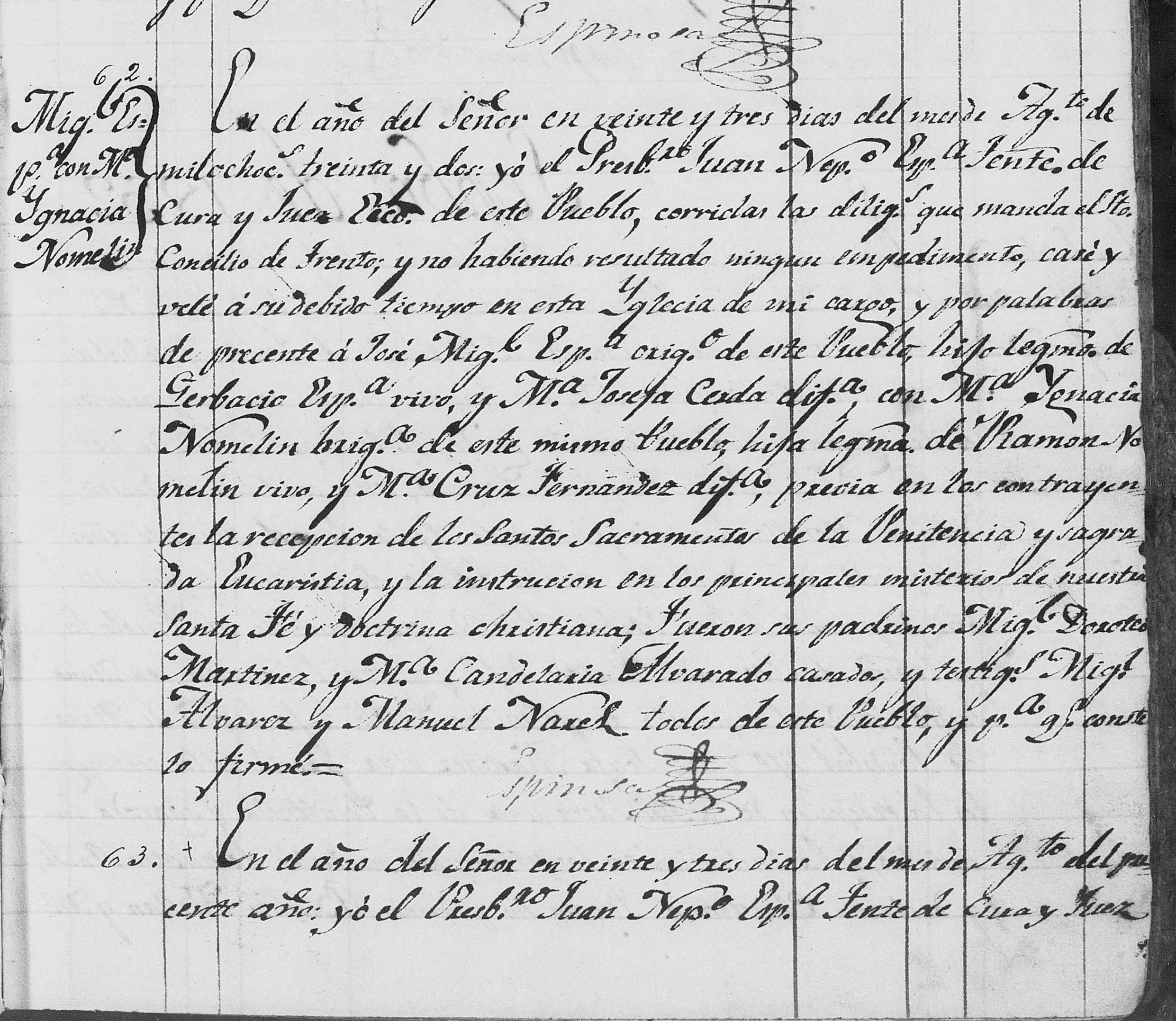 I've had no luck in searching the baptismal records for Purepero and Tlazazalca, Michoacan.  I have seen variations on the name Nomelin, like Lomelin, Numelin, Romelin, etc.  I have attached a copy of their marriage record.  Any insights or suggestions are appreciated.